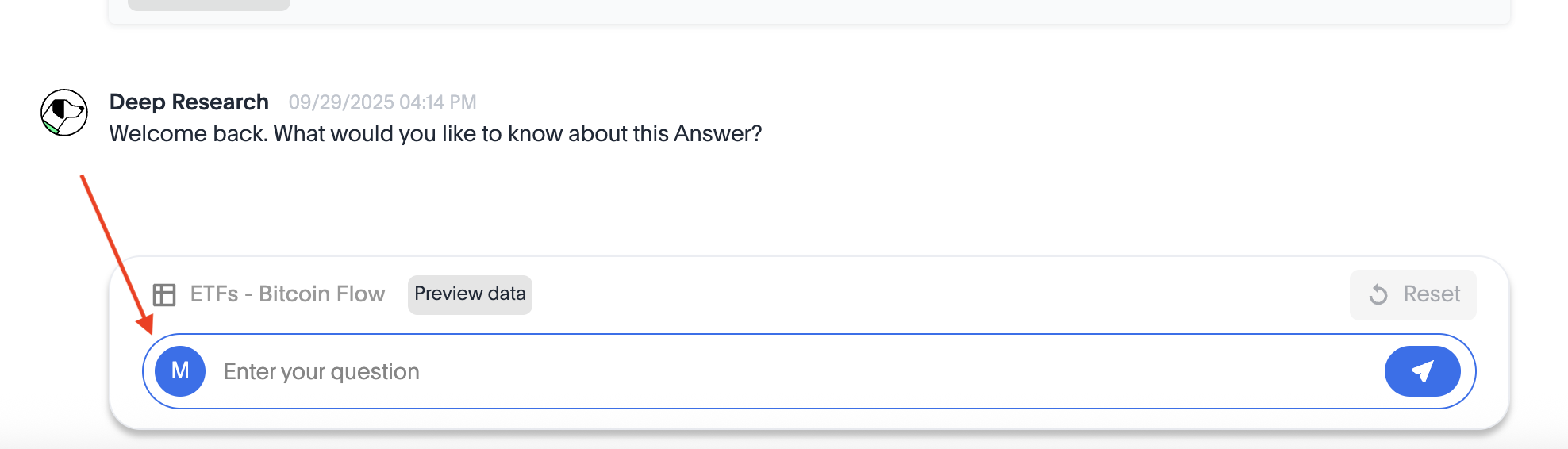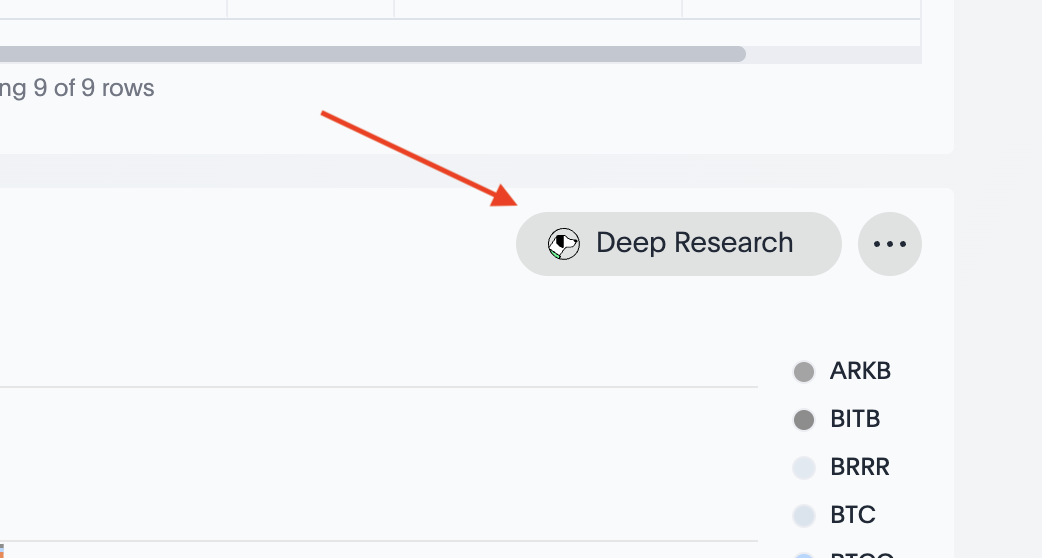 Access Deep Research: Locate the Deep Research input field on any chart by hovering over the upper-right corner. The Deep Research button will appear.